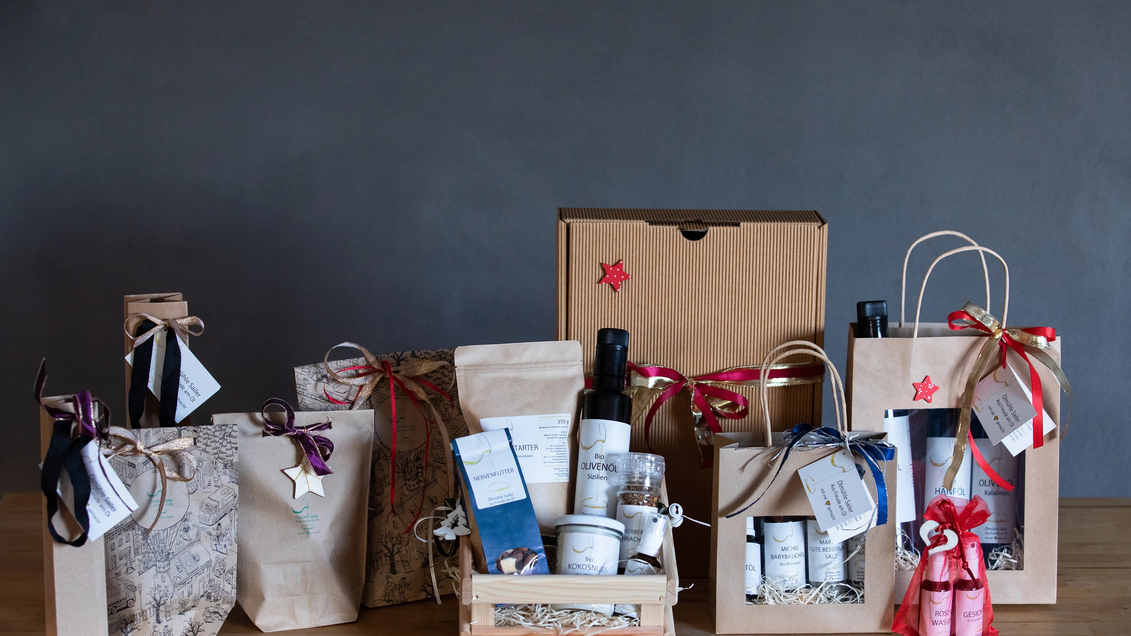 Ein Geschenk voller Geschmack: hochwertige Bio-Öle, knackiger Salatmix und eine „gsunde Knabberei“. Liebevoll verpackt mit Schleife – natürlich Freude schenken!